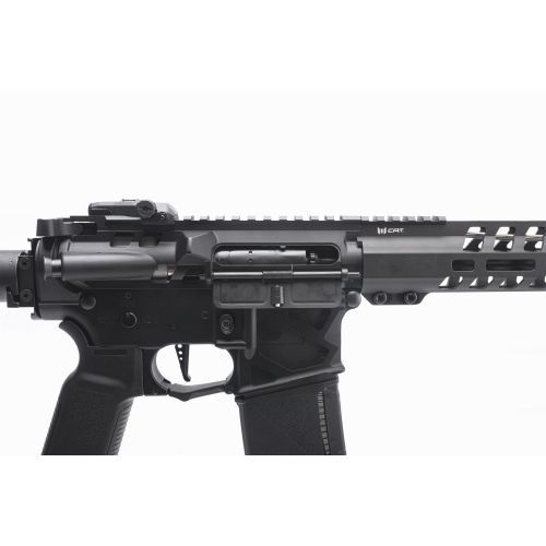 The Arcturus X C.A.T. AR-15 Explorer 10" AR AEG features a full aluminum receiver construction that offers a realistic look and feel, as well as a C.A.T. modular tactical stock that allows for more comfort options. The skeletonized receiver design helps to cut down on weight for this rifle, and the free float M-LOK handguard provides plenty of rail space for M-LOK compatible accessories.