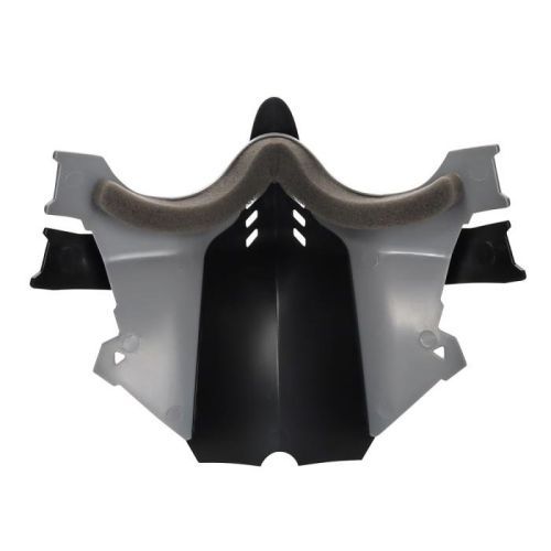 Sci-fi style sharp design with double layers of armour. The material of the main body is made of "polycarbonate" which is also used for police shields. Unlike cloth or soft type face guards, the impact of bullets does not penetrate. The long nose guard secures a space so as not to interfere with the wearing of eyewear while firmly covering the bridge of the nose. In addition, it is equipped with a special gasket that prevents fogging of eyewear, and a spare gasket is also included. The mouth has an "easy breath shape" that expands the space and makes it easier to breathe. Rubber cloth is used for the headband. The band shape is the same type that is also used in gas masks, preventing interference with ears and headgear and suppressing displacement of the face guard.