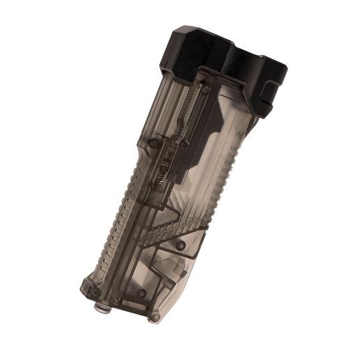 The LayLax High Bullet BB Loader is your all-in-one loader for all your reloading needs! Load a wide variety of magazines including AEG mid caps, Hi capa and M4 MWS gas magazines. Expand your reservoir without limits! Utilise a wide variety of PET (Plastic) bottles for even more BB storage. No more losing your gas magazine adapter with our newly integrated adapter that folds neatly into the unit for easy storage. No more sore thumbs! Flip the plunger to either side of the unit for an easier grip and reload for both left and right-handed users. The translucent case allows you to check the remaining BBs and its compact size allows it to be stored in a wide variety of pouches and pockets.