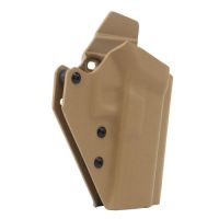 The main material of this holster is the semi-rigid "KYDEX" - great for retaining your sidearm whilst leaving it easily accessible. Due to its "rigid, flexibility", the KYDEX will provide a high-friction hold of your sidearm, which is overcome by the force you apply drawing or holstering your sidearm. To get the perfect retention level. there are three "closing screws" that need to be adjusted when the replica is held inside - not too loose, not too tight.