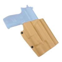 The main material of this holster is the semi-rigid "KYDEX" - great for retaining your sidearm whilst leaving it easily accessible. Due to its "rigid, flexibility", the KYDEX will provide a high-friction hold of your sidearm, which is overcome by the force you apply drawing or holstering your sidearm. To get the perfect retention level. there are two "closing screws" that need to be adjusted when the replica is held inside - not too loose, not too tight.