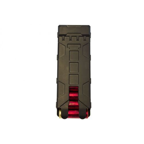 Plastic Shotgun Shell Magazine designed to store up to 10 shells. A spring loaded platform inside pushes the shells down so you can access them as needed. 2 rear plastic straps can be used to secure the magazine on either MOLLE platforms or just on a belt/strap.
