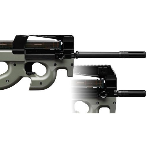 Weighing just 1,918g (long barrel) or 1,900g (short), the bullpup design places the action behind the trigger for superior balance and a low visual profile. Grip the enlarged trigger guard as a forward handle for rock-solid stability, and break down the rifle into three major components—magazine, barrel unit, and receiver—just like the real PS90 for easy maintenance and transport.