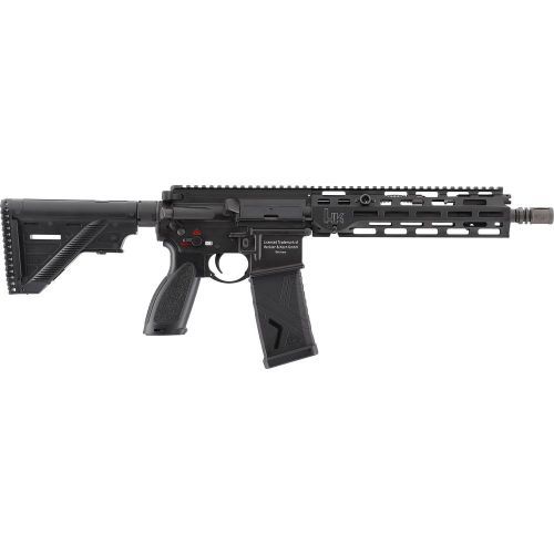 This high-class HK416 A5 with full-metal body is especially interesting for ambitious airsoft players and leaves nothing to be desired. Most prominent feature is the M-LOK fore-end which takes the most different accessories. For optics mount it offers a Picatinny top rail. The pistol grip is compatible with the AR standard, and the buffer tube accepts all AR stocks with Mil-Spec. Ambidextrous operating element, the adjustable Shoot-up and the muzzle thread (M14x1 CCW) complement the configuration of this premium rifle. The HK416 A5 comes without iron sights.
