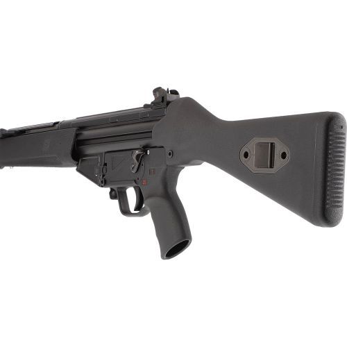 Out in the field, the gas-operated Airsoft version is a great choice for challenging matches. The robust steel stamping body and glass-fiber-reinforced polymer closely emulate the original and give the HK33 an authentic feeling. A steel cocking lever matching that of the original, the typical drum sight and a ergonomic stock perfect the rifle´s convincing looks.