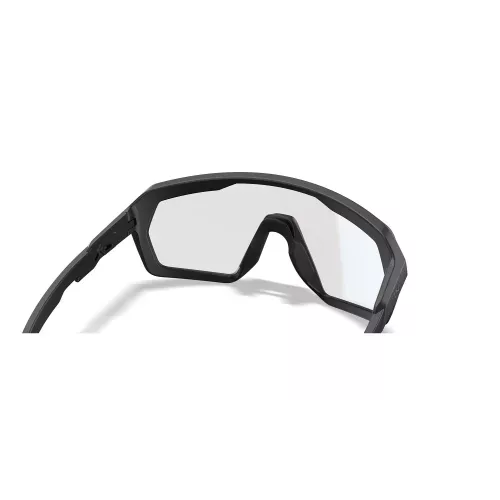 The pronounced wraparound fit effectively blocks peripheral light, while pivoting side shields provide added protection and flexibility when needed. The lightweight yet robust frame combines durability with all-day comfort. High-traction rubber on the nose and temples keeps the sunglasses securely in place, even when the pace is high.